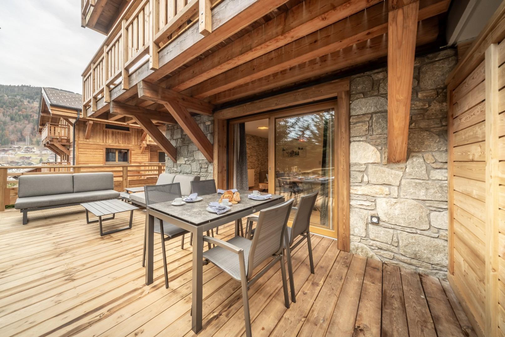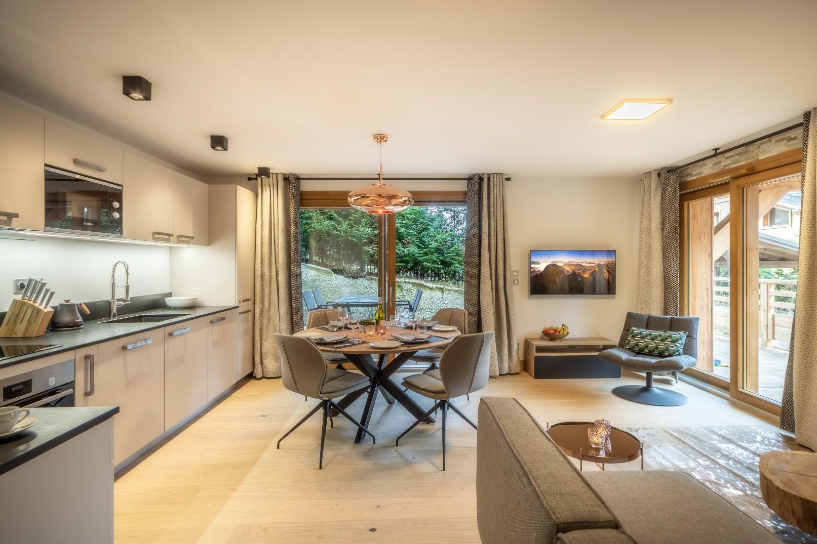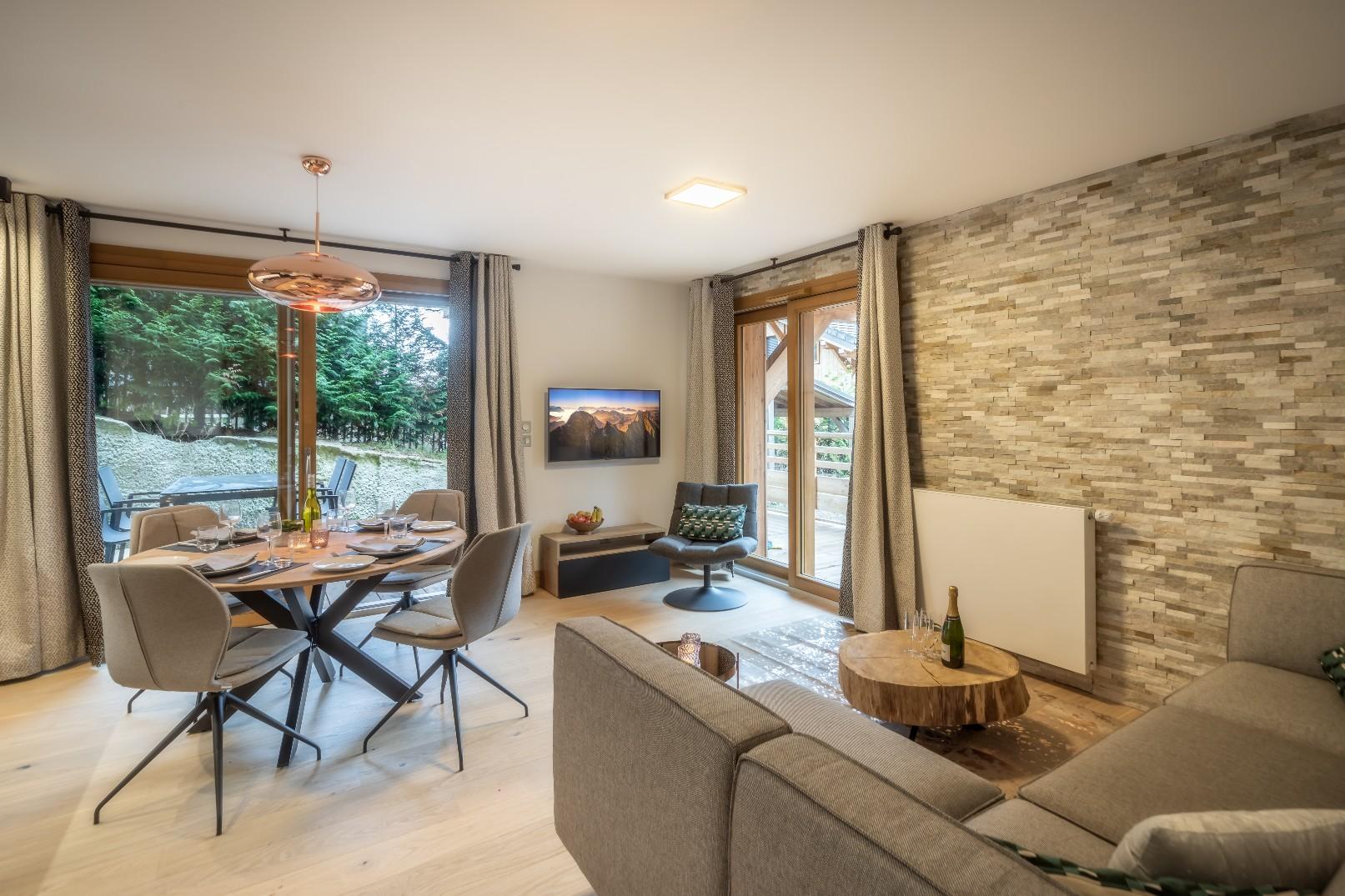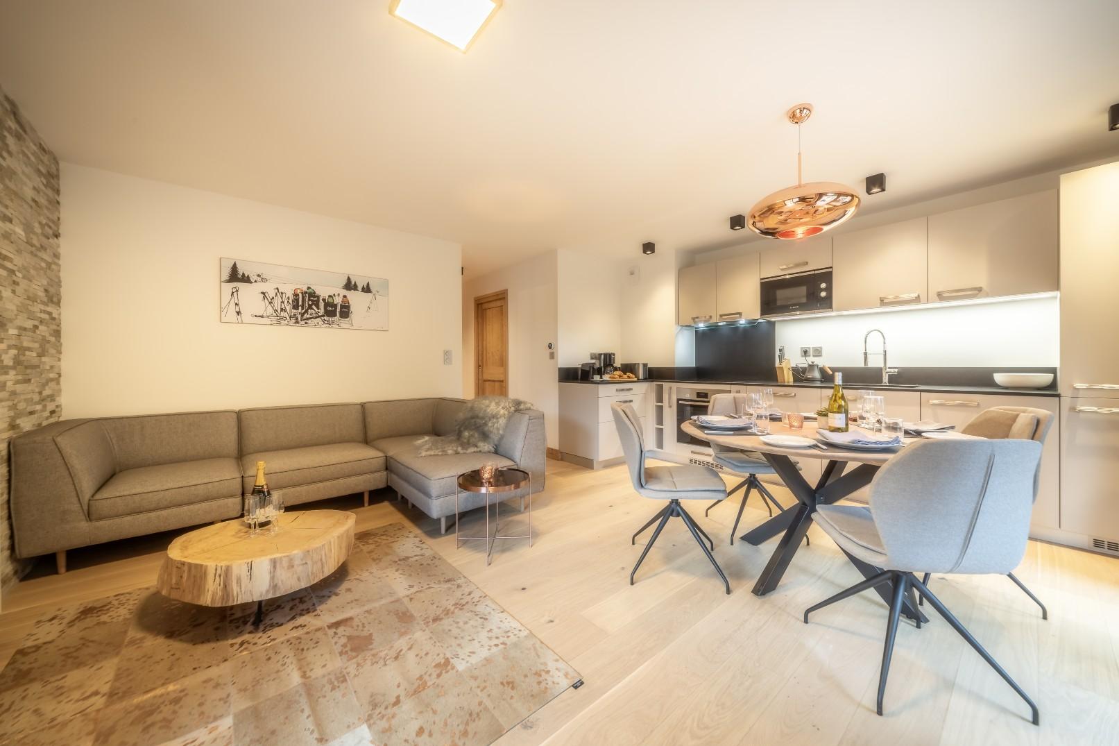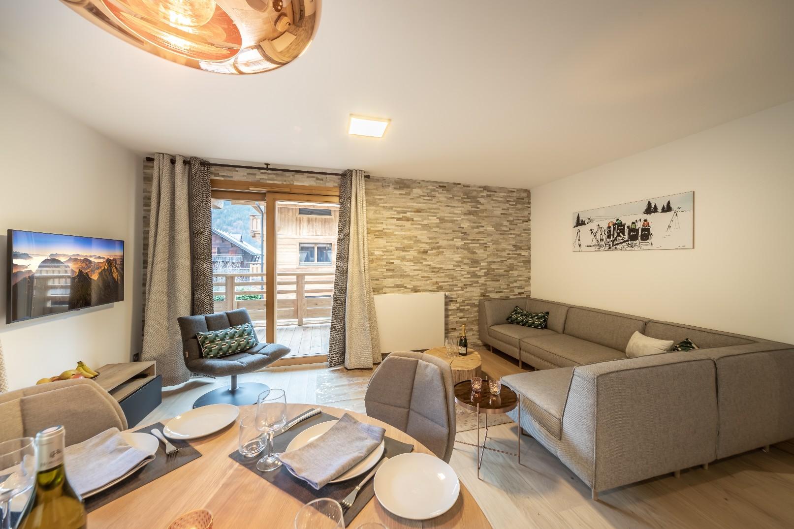 Les Deux Frères is a modern, self-catered apartment in Morzine, excellently located just below the Pleney Piste B. It features two versatile bedrooms, a spacious living area with Smart TVs and Netflix, and a large terrace that offers beautiful mountain views. The apartment includes modern amenities like a fully equipped kitchen, free Wi-Fi, and secure storage, along with a private parking space. It’s just a five-minute walk from the Pleney telecabine and the town centre. Please note, pets are not allowed in this apartment.