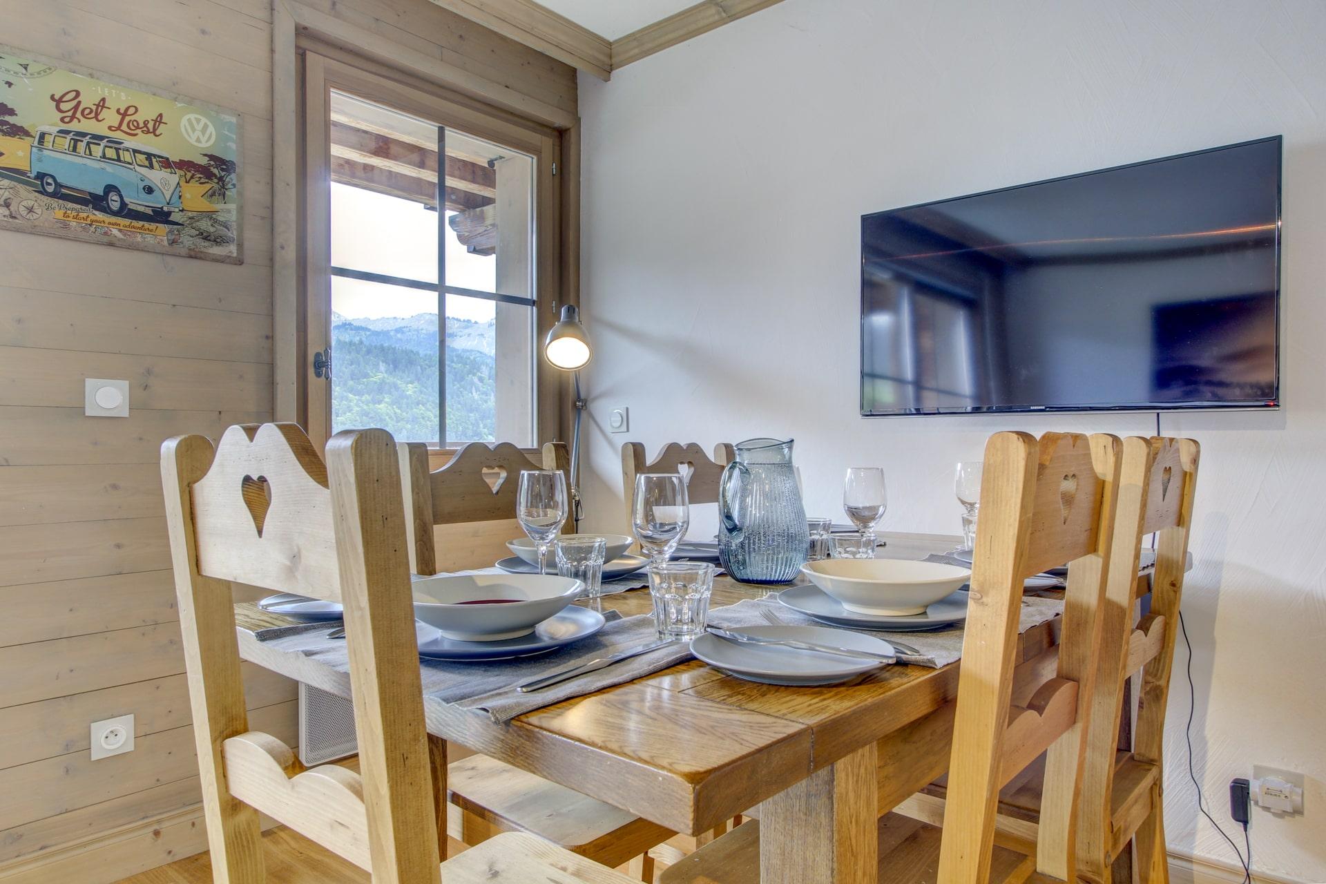 La Vista enjoys a great location just a 3 minute walk to the Super Morzine footbridge and then a 2 minute walk over the bridge so 5 minutes in total on foot to the Super Morzine lift. With ski lifts, shops, and restaurants all within easy reach, this apartment offers the perfect balance of convenience and tranquillity. Nestled in a quiet yet central area, guests can enjoy the stunning mountain views from the south-facing balcony while remaining close to the bustling centre.